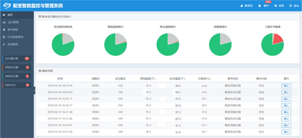 異常氣象預警,溫度-負荷協同預警,接頭溫度分(fēn)級預警,有效防止配變過熱燒損。