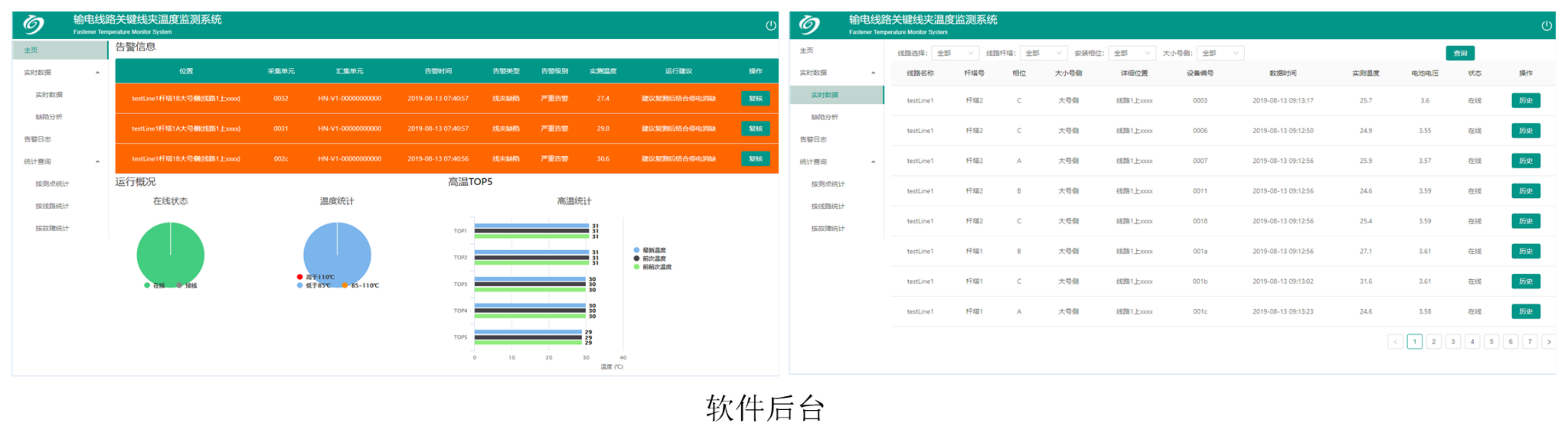 實時獲取各關鍵線夾的溫度,繪制曆史溫度曲線與溫升預測曲線。